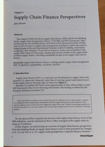 The chapter “Supply Chain Finance Perspectives” by Jan Jansen, 2024